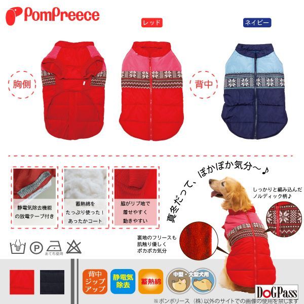 【ズバリ価格】中大型犬用 ジャガードニット 保温コート 9号【ネイビーのみ】